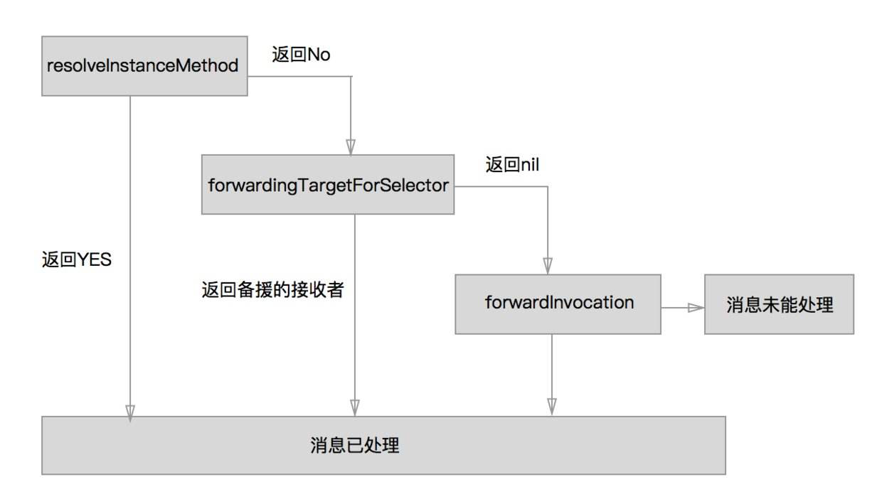 - 先征询接收者所属都类,看其是否能动态添加方法